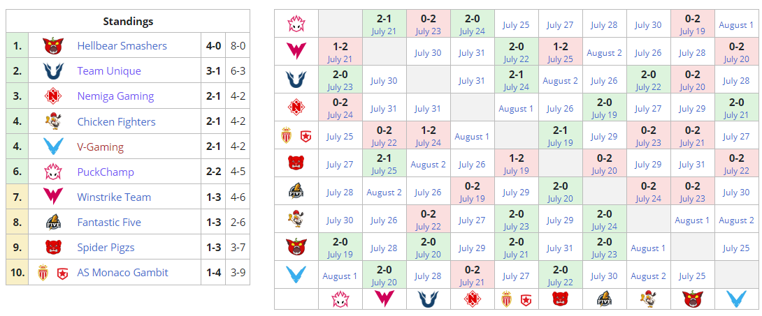 В настоящее время AS Monaco Gambit занимает последнее место в групповой стадии с четырьмя поражениями и одной победой. В следующем матче команда встретится с PuckChamp — поединок начнется в 21:00.