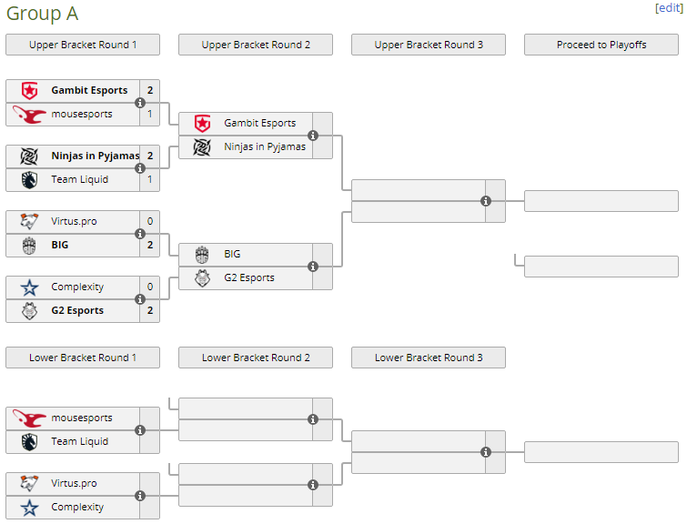 Российский коллектив опустился в нижнюю сетку к Complexity, а BIG предстоит схватка с G2 во втором раунде верхней сетки.
