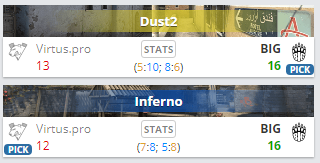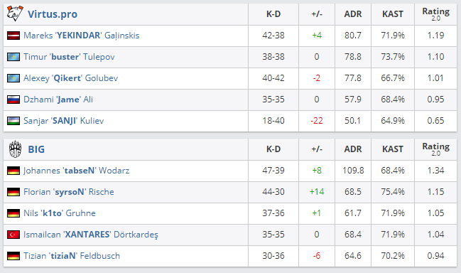 В рамках матча группы “А” IEM Кельн 2021 коллектив BIG переиграл команду Virtus.pro со счетом 2:0.