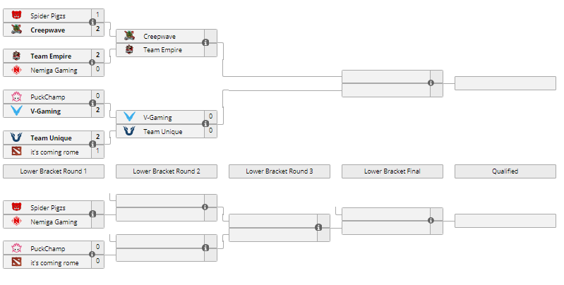 Завершилась вторая пара стартовых матчей закрытых отборочных на ESL ONE FALL. Team Unique победила it’s coming rome со счетом 2:1, а Spider Pigzs не смогла одолеть V-Gaming — 1:2.