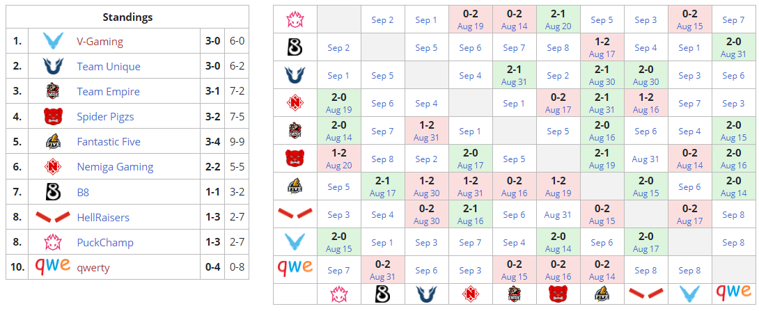 Дальше по игровому календарю Nemiga встретится с Empire, а Fantastic Five выявит лучшего с PuckChamp. Поединки пройдут 1 и 5 сентября соответственно.