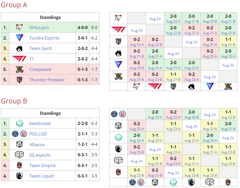 В группе “B” лидерство закрепилось за beastcoast, однако в этой шестерке все решится заключительных матчах, которые пройдут 24 августа.