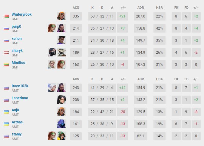 GMT eSports, за которую выступает белорус Евгений WinteryRook Ленько, оказалась сильнее Aim.Attack в полуфинале турнира GLA Baku Summer Cup 2021. Счет — 2:0 (Bind –14:12, Split — 13:7). 31 августа команда нашего соотечественника сыграет в гранд-финале ивента.