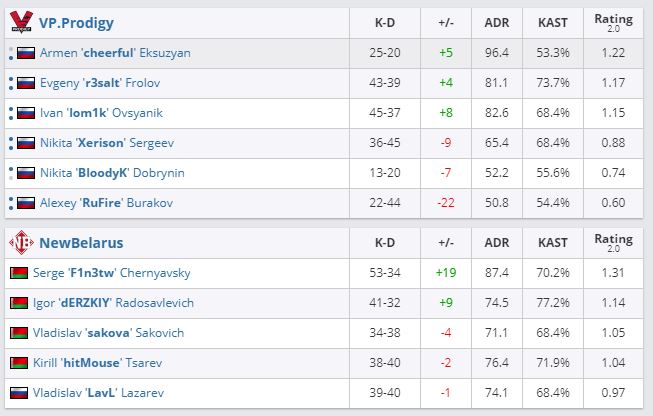 Коллектив NEWBELARUS одержал победу над VP.Prodigy в рамках группового этапа IronWar Grand Prix. Счет — 2:0. На Overpass “Новая Беларусь” выиграла со счетом 16:11, а на Dust2 была сильнее — 16:14.