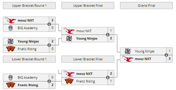 Молодежный состав mousesports в гранд-финале WePlay Academy League Season 1 со счетом 3:1 обыграл Young Ninjas и стал чемпионом турнира, заработав $45 000. Плей-офф ивента проходил в Киеве.