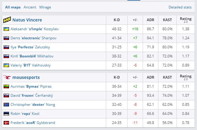 NaVi добыли победу над Mousesports в групповом этапе ESL Pro League Season 14. Счет — 2:0 (Ancient — 16:9, Mirage — 16:9). Для представителей украинской организации это вторая виктория на турнире. Европейская команде же, наоборот, оба своих поединка проиграла.