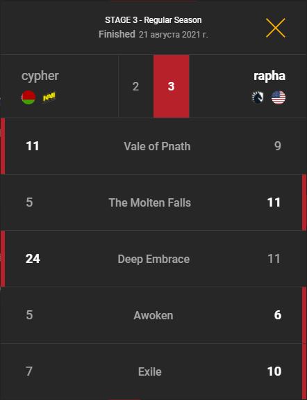 В матче нижней сетки за попадание в топ-4 Quake World Championship 2021 белорус Алексей cYpheR Янушевский, представляющий организацию NaVi, в упорной борьбе уступил американцу Шейну rapha Хендриксону из Liquid со счетом 2:3. На этом выступление на турнире для Алексея завершилось. Он заработал $8 500 за 5-6 место.