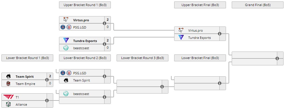 Коллектив Tundra обыграл команду beastcoast со счетом 2:0 в верхней сетке плей-офф ESL One Fall. Перуанская команда опустилась в нижнюю сетку, где сыграет с победителем матча T1 – Alliance. А европейский коллектив выступит в финале верхней сетке против Virtus.Pro. Оба матча запланированы на 28 августа.