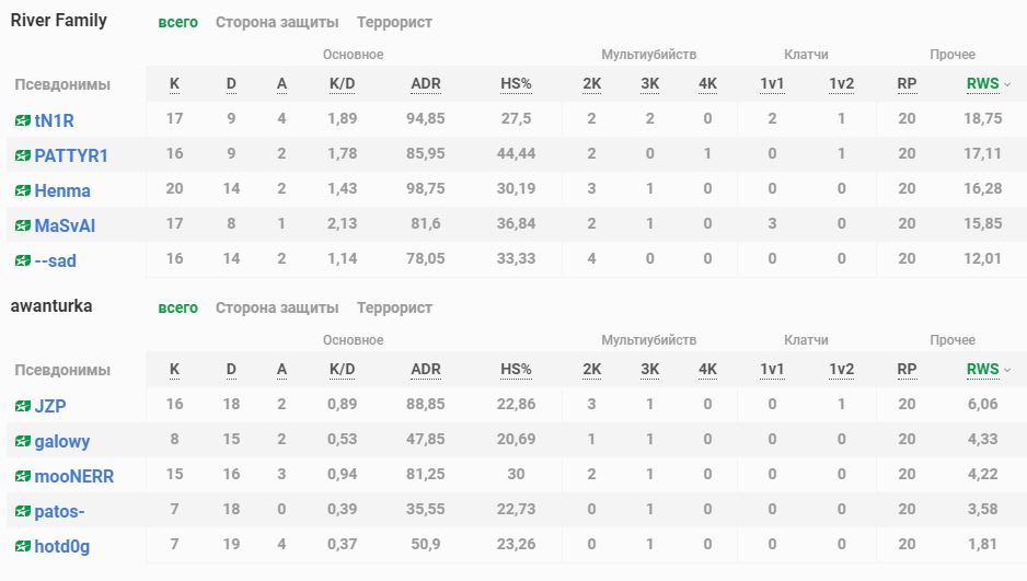 River Family обыграла коллектив awanturka в рамках ESEA Main. На карте inferno белорусская команда одержала победу со счетом 16:4. У “семьи” уже 5 викторий на турнире при одном поражении. Винрейт — 83%.