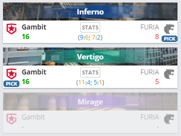 В матче группы “D” четырнадцатого сезона ESL Pro League Gambit Esports легко обыграла FURIA Esports, завоевав третью победу на турнире. На первой карте (Inferno) счет 16:8, на второй (Vertigo) — 16:5.
