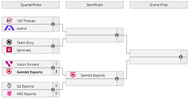 Gambit Esports переиграла Vision Strikers в четвертьфинале VALORANT Champions Tour 2021: Stage 3 Masters. Матч завершился со счетом 2:1. В полуфинале команда Игоря Redgar Власова будет противостоять победителю из пары G2 Esports — KRU Esports. Vision Strikers завершили выступление на турнире. Коллектив занял 5-8 место и заработал $25 000.