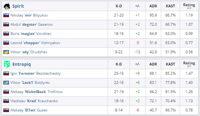 Завершились все матчи четвертого раунда группы “А” на Intel Extreme Masters Season XVI – Fall: CIS. Natus Vincere легко одолели Akuma на Overpass — 16:8. Team Spirit потерпела первое поражение на турнире: Entropiq оказалась сильнее на том же Overpass — 16:11.