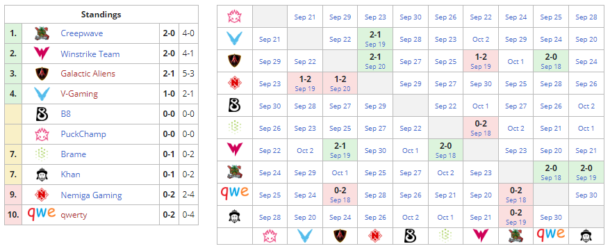 Следующий поединок Nemiga проведет с PuckChamp, а Galactic Aliens — с V-Gaming. Этот игровой день продолжится противостоянием qwerty — Winstrike.