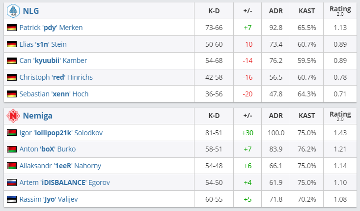 Во втором раунде плей-офф регулярного сезона ESEA Season 38: Advanced Division – Europe Nemiga Gaming оказалась сильнее немецкого коллектива No Limit Gaming и закончила встречу со счетом 2:1.