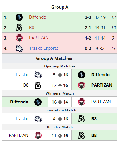 Завершился первый день группового этапа META’21 Open. CS:GO. Из группы “А” в плей-офф прошли команды Diffendo и B8. Коллективы PARTIZAN и Trasko Esports завершили свое выступление на турнире.