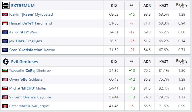 Evil Geniuses завоевала последнюю путевку на PGL Major Stockholm 2021 от Северной Америки. “Злые гении” одержали победу над СНГ-организацией EXTREMUM — 2:1 (Nuke 16:4, Mirage 13:16, Inferno 16:7), тем самым не пустив их на грядущий мейджор.