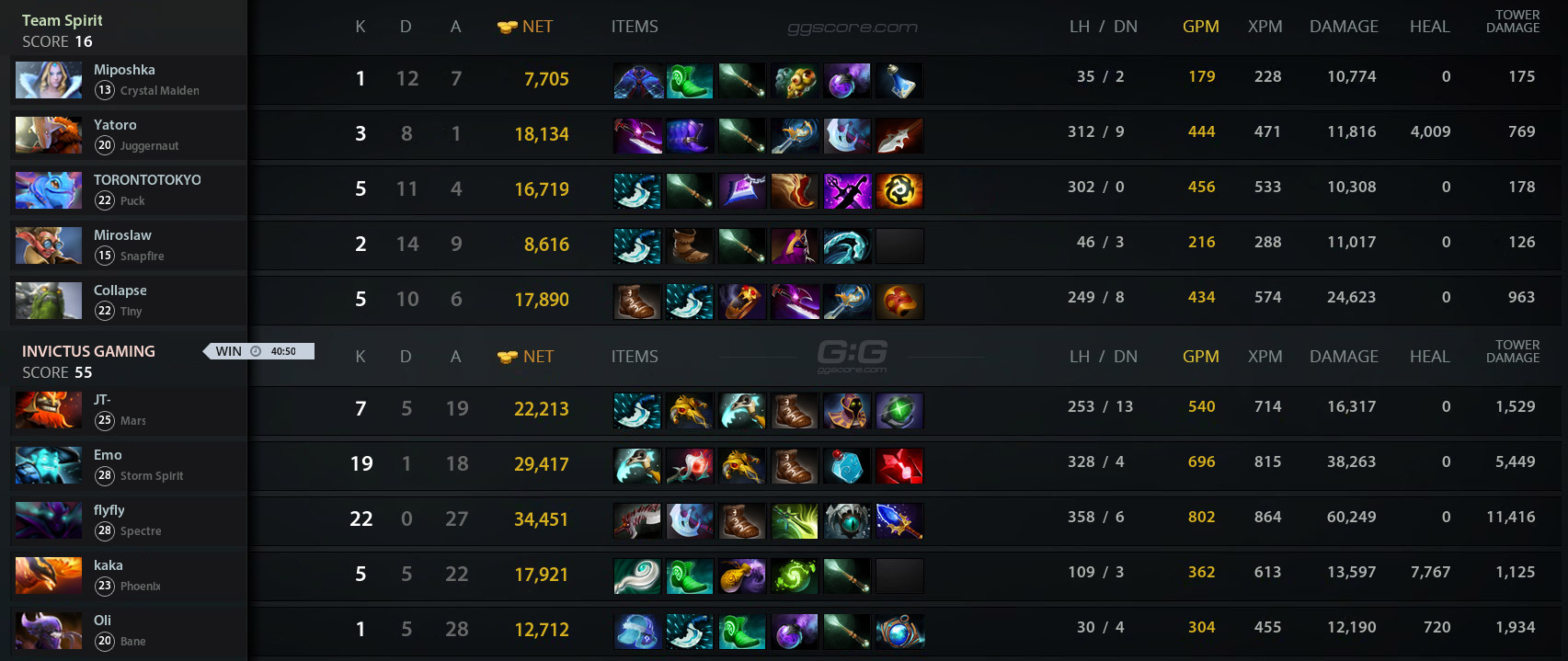 Кастер Виталий V1lat Волочай поделился статистикой, что керри Invictus Gaming установил рекорд в третьей карте серии против Team Spirit. Цзинь flyfly Чжии закончил карту со счетом 22/0/27, это рекорд по показателю KDA за всю историю турниров The International.