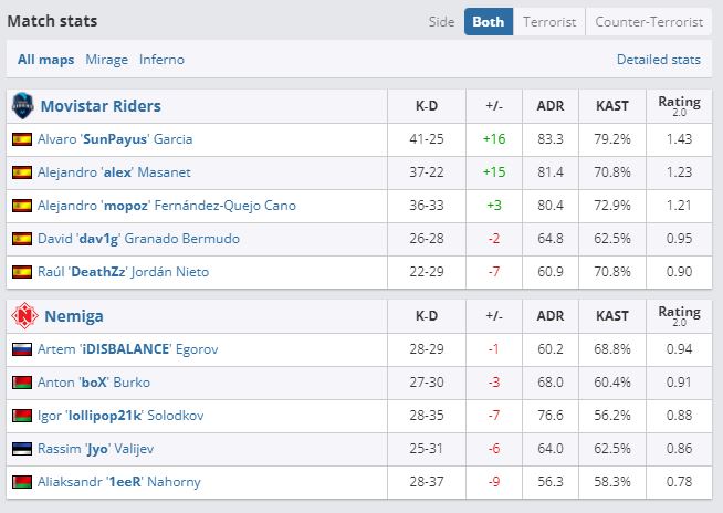 Nemiga продолжит выступление на ESEA: Premier Relegation в нижней сетке. Белорусская команда уступила испанскому коллективу Movistar Riders — 0:2 (Mirage — 11:16, Inferno — 5:16). Следующий поединок минчане проведут 16 октября (20.00). Их соперником станет проигравший пары HONORIS и ENTERPRISE esports.