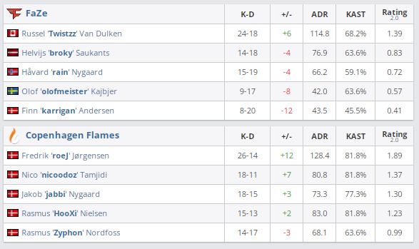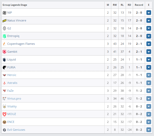 Сейчас команда из Копенгагена сохраняет шансы выйти в плей-офф. У коллектива две победы и поражение. У FaZe ситуация противоположная — 1:2. Состав Олофа Olofmeister Кайбьера еще может выйти в стадию нокаут-раунда, но права на ошибку уже не имеет. Аналогичная ситуация и у команд из СНГ. Gambit имеет две победы и поражение, а “медведи” два поражения и победу.