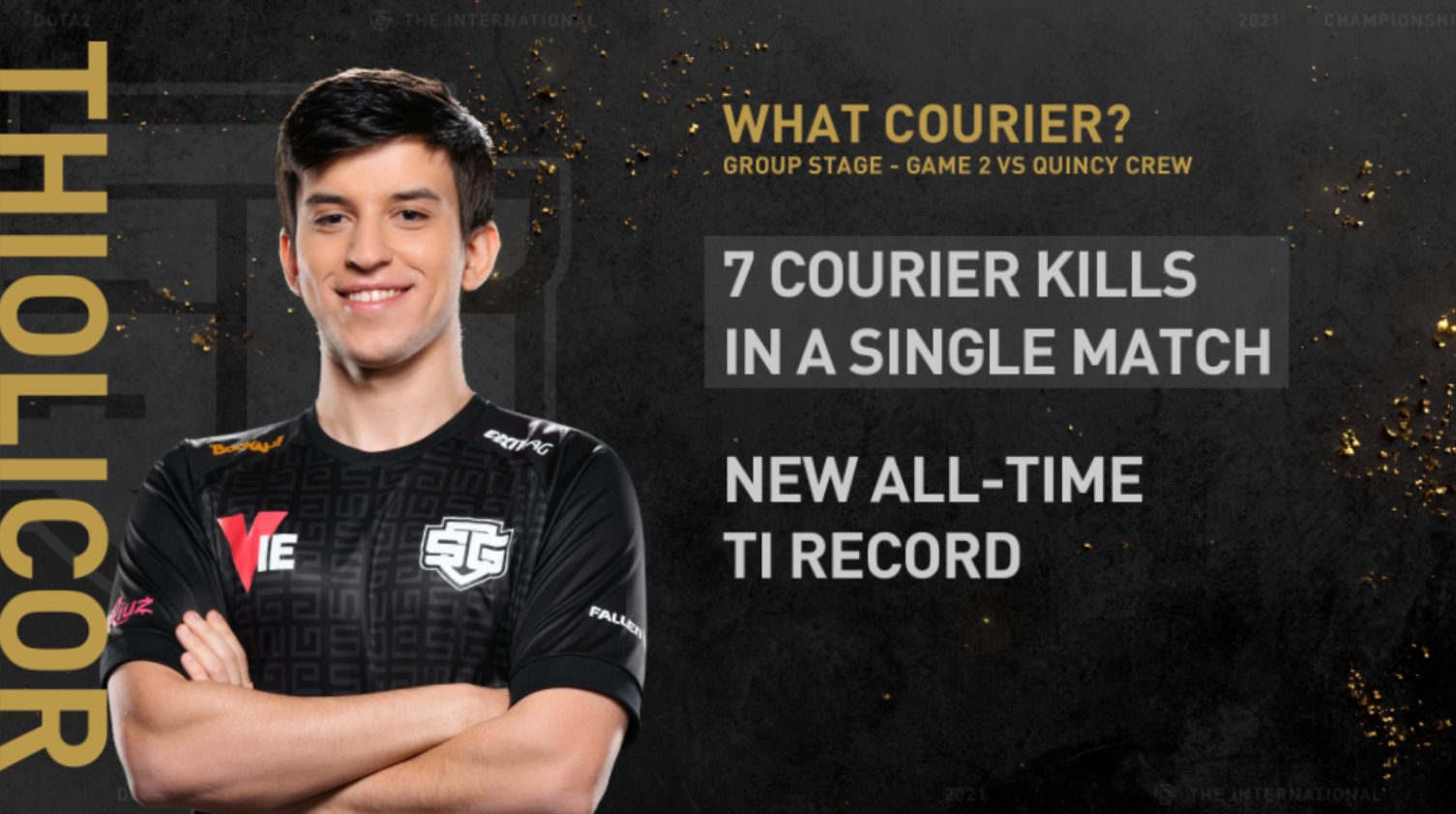 Саппорт SG esports Тиаго де Оливейра Thiolicor Кордейро убил аж семь курьеров за одну карту против Quincy Crew — это стало абсолютным рекордом серии The International 10. Однако, это не помогло бразильцам одержать победу в матче: SG esports уступила 0:2, упав на последнее место группы “B”.