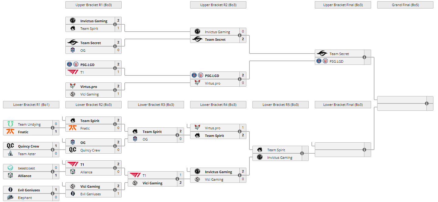 В четвертьфинале нижней сетки The International 10 Invictus Gaming оказалась сильнее Vici Gaming, завершив встречу со счетом 2:0. Проигравшая команда покинула турнир, заработав $1 400 600. Победители матча сыграют с Team Spirit за попадание в топ-3 турнира, поединок можно посмотреть на нашем сайте, ориентировочное начало матча в 16.00.