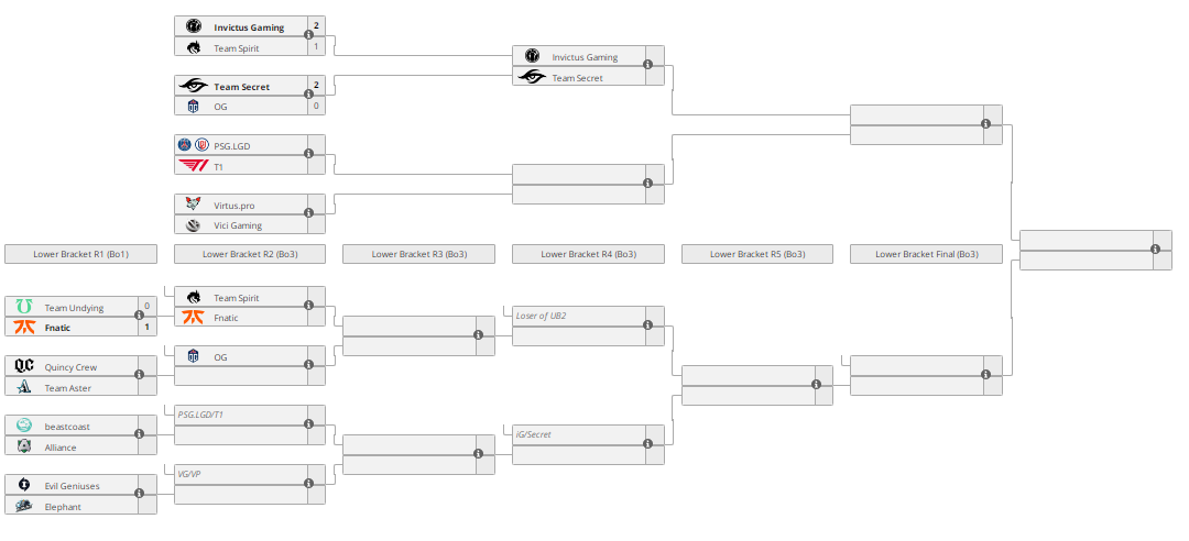 Южноазиатский коллектив Fnatic победил североамериканскую команду Team Undying в матче первого раунда нижней сетки The International 10. Поединок прошел в формате bo1, то есть до одной виктории.