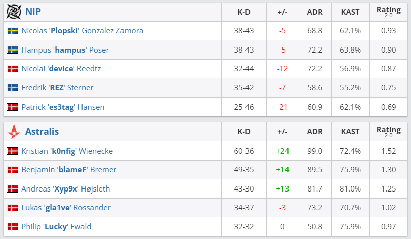 В четвертом матче BLAST Premier: Fall Finals 2021 Astralis в обновленном составе со счетом 2:0 переиграла Ninjas in Pyjamas (Nuke — 16:7, Overpass — 19:16).