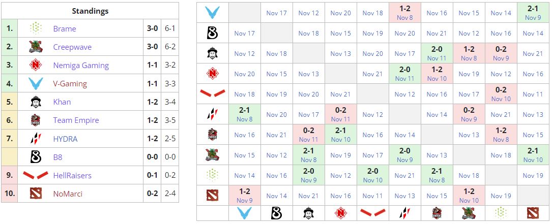 Уже 12 ноября Khan сыграет с V-Gaming в рамках очередного тура D2CL. Team Empire сразится с Creepwave 13 ноября.