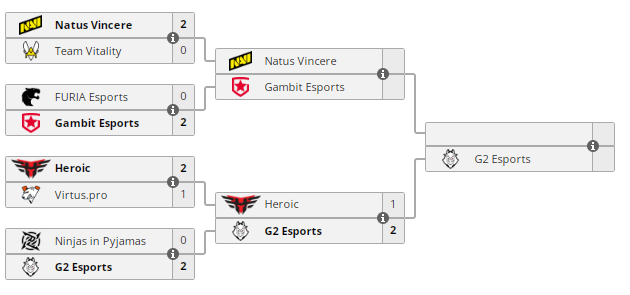 Датчане заняли 3-4 место и заработали $140 000, а также получили 1100 очков Pro Tour и 1250 очков BLAST Premier. G2 прошла в полуфинал, где 7 ноября сыграет с победителем пары NaVi — Gambit.