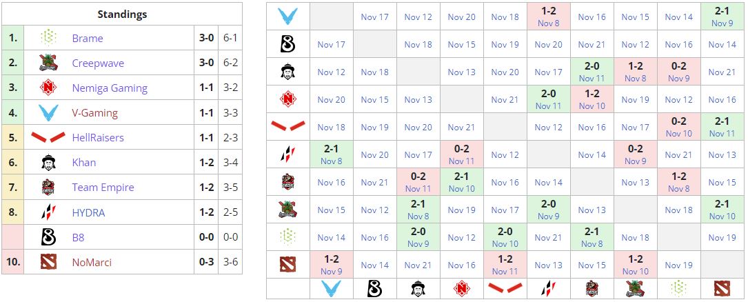12 ноября HellRaisers сразится с Hydra. NoMarci сыграет с тем же оппонентом, но уже 13 ноября.