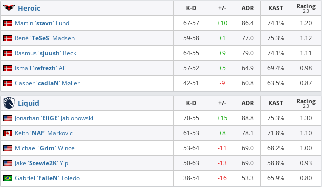 Коллектив Heroic оказались сильнее Liquid в матче нижней сетки BLAST Premier: Fall Finals 2021. Итоговый счет встречи — 2:1 (12:16 — Overpass, 16:13 — Nuke, 16:12 — Inferno). Следующими противниками датчан станут их соотечественники из Astralis. Матч пройдет 27 ноября, начало — 21.30.Liquid заняли на турнире 5-6 место и заработала $15 000.