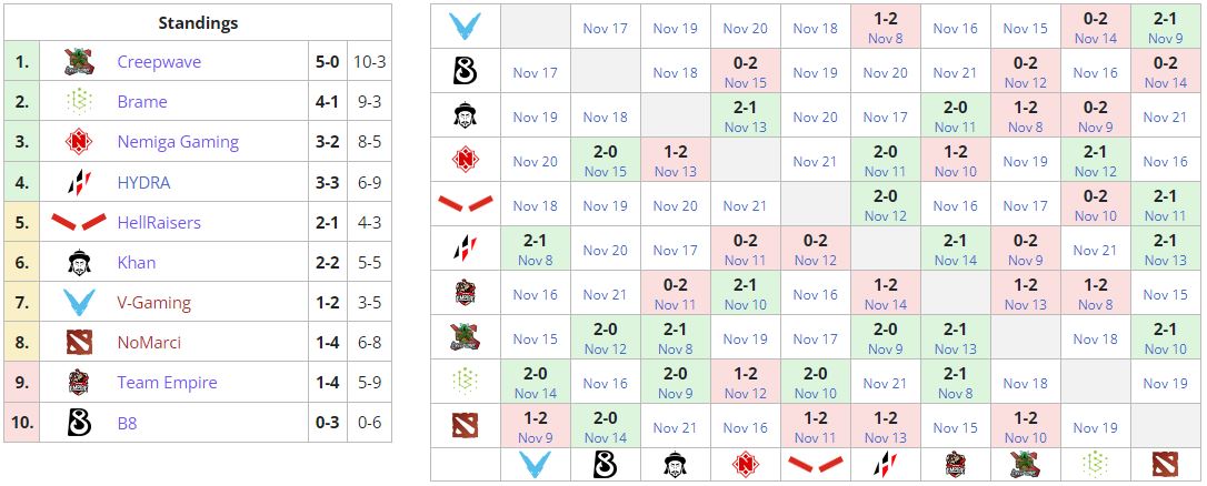 16 ноября Nemiga сразится с NoMarci (21.00). B8 в тот же день сыграет против Brame (18.00).