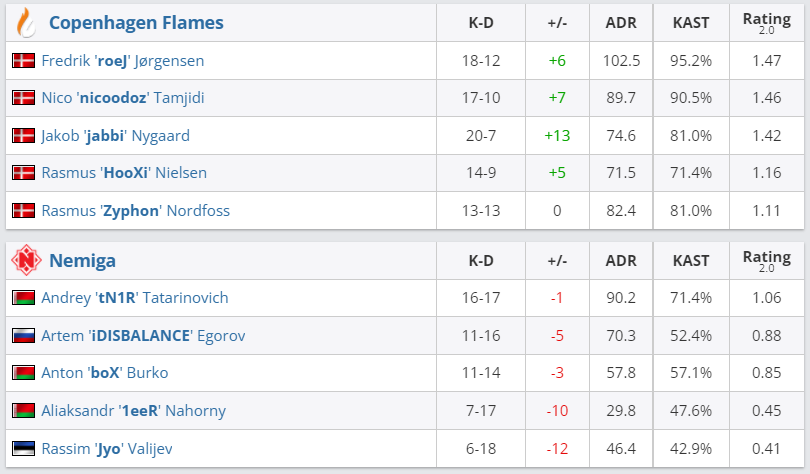 В матче группы “B” ESEA Season 39: Premier Division Nemiga Gaming со счетом 0:2 (Mirage — 5:16, Overpass — 10:16) уступила датскому коллективу Copenhagen Flames. Теперь у белорусской команды одна победа и два поражения в рамках данного турнира, следующий соперник — Team BLINK.