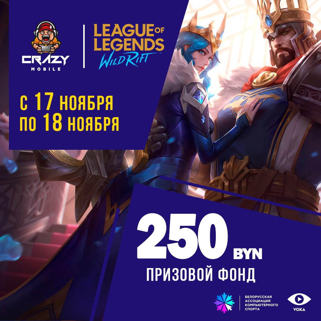 С 17 по 18 ноября будет проходить первый турнир по League of Legends: Wild Rift в рамках серии Crazy Mobile, организованной Белорусской ассоциацией компьютерного спорта. Призовой фонд — 250 рублей. Всего запланировано три ивента по этой дисциплине. Зарегистрироваться для участия и получить более подробную информацию можно здесь. Отметим, что на турнире ждут игроков с белорусским гражданством старше 7 лет.