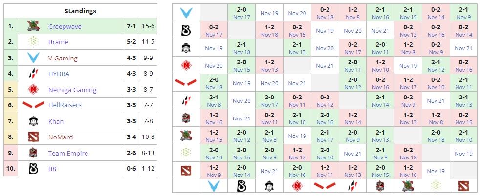 В казахстанском дерби группового этапа Dota 2 Champions League Season 5 Khan не смогла победить V-Gaming. Итоговый счет — 0:2. V-gaming вышла на третью строчку группы со статистикой 4-3, а Khan идут на седьмом месте (3-3). Обе команды сыграют свои следующие матчи 20 ноября. V-gaming сразится с Nemiga, а Khan с HellRaisers.