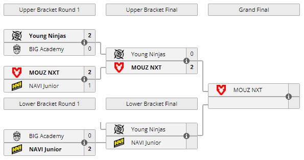 13 ноября прошли два матча плей-офф WePlay Academy League Season 2. В нижней сетке NAVI Junior выбили BIG Academy — 2:0 (Overpass — 16:6, Inferno — 16:2). А в верхней — MOUZ NXT расправилась с Young Ninjas со счетом 2:0 (Nuke — 19:15, Ancient — 16:1) и вышла в финал турнира.