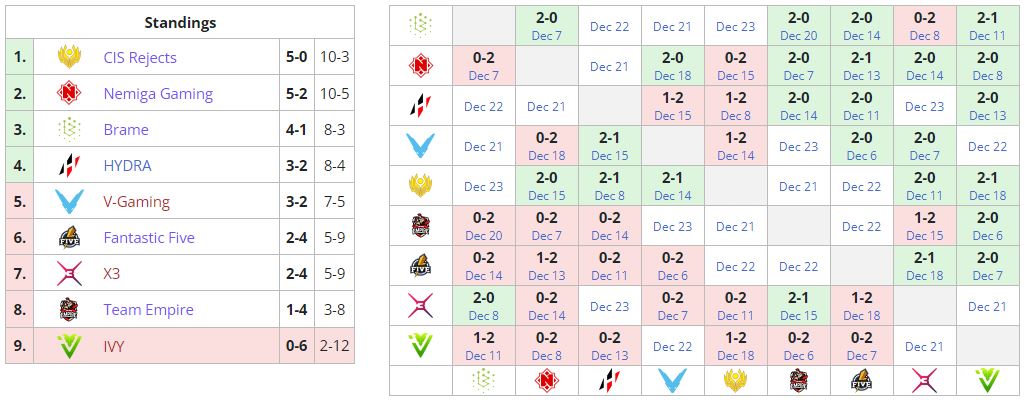 21 декабря обе команды сыграют на D2CL снова. В соперниках у Brame СНГ-коллектив V-Gaming, у Team Empire — CIS Rejects.