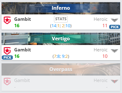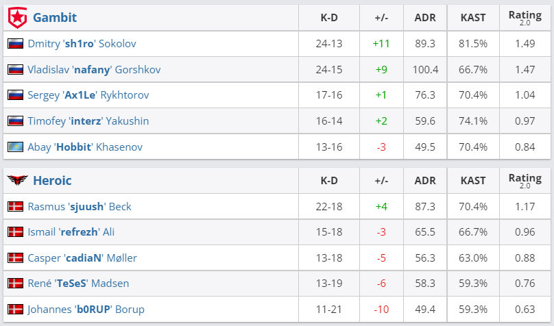 Во втором матче BLAST Premier: World Final 2021 состав Gambit Esports со счетом 2:0 обыграл Heroic. Датский клуб продолжит выступление на турнире в нижней сетке.