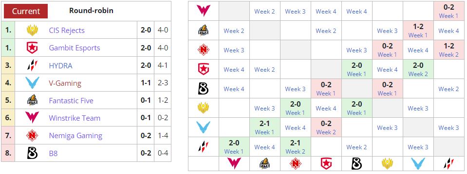 Положение команд в турнирной таблице: