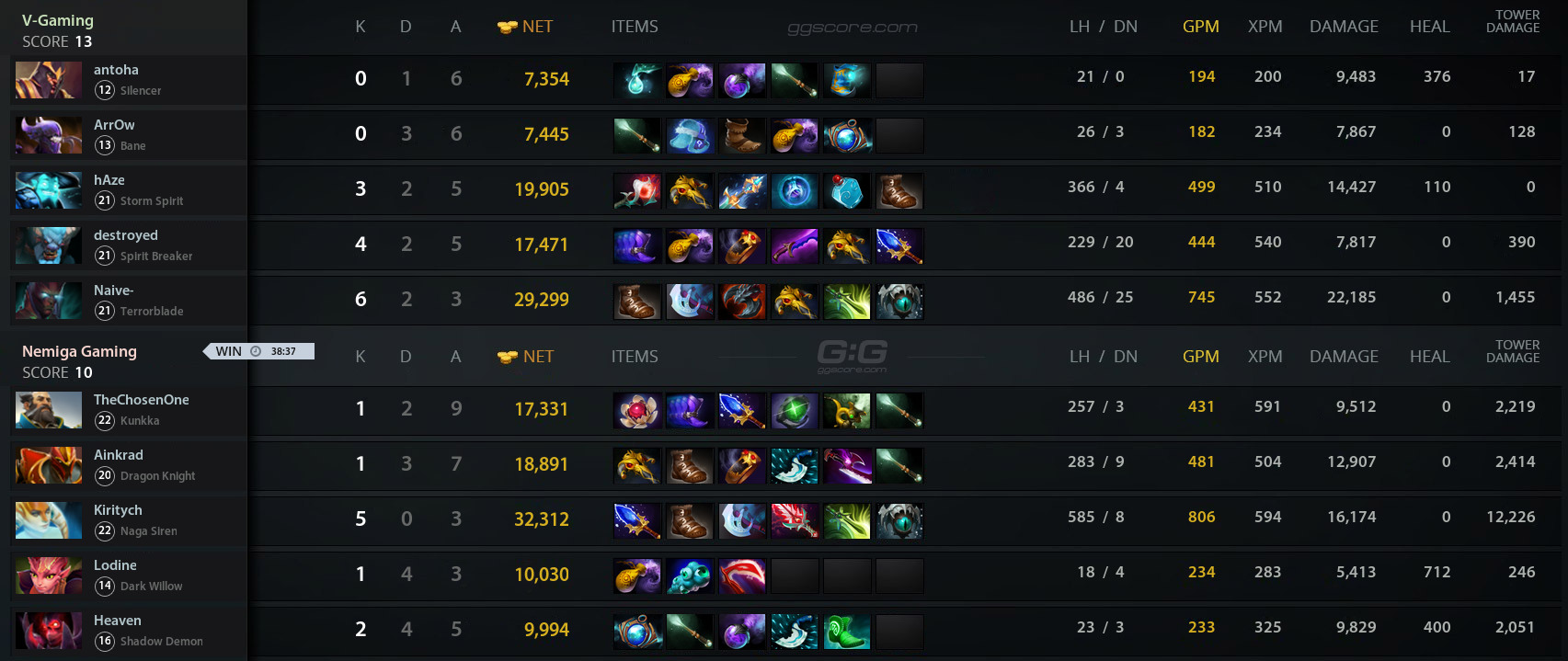 Nemiga обыграла V-gaming в первой переигровке Dota 2 Champions League Season 6. Теперь судьба команды зависит от результата встречи казахов с Brame. В случае поражения первых команда гарантирует себе место в плей-офф. При противоположном исходе минчане сыграют с Brame. Отметим, что белорусский коллектив играет с заменой.