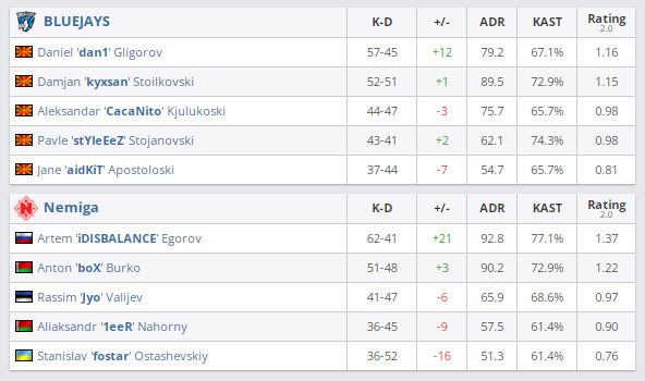 Nemiga провела матч с македонской BLUEJAYS в рамках первого раунда плей-офф на Funspark ULTI 2021: Europe Season 4. Итоговый счет — 1:2 (Nuke — 16:6, Mirage — 10:16, Inferno — 6:16).