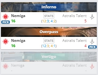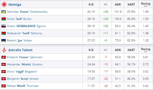 Белорусская команда Nemiga разгромила молодежный состав Astralis Talent в рамках Malta Vibes Knockout Series #4. Итоговый счет — 2:0. Отметим, что за две карты Nemiga проиграла всего лишь 9 раундов. В следующем этапе турнира минчане сыграют против немецкого коллектива Cowana Gaming.