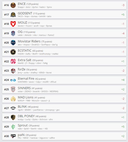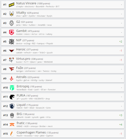 Киберспортивный портал HLTV опубликовал обновленный рейтинг CS:GO команд. NiP вернулась на пятую строчку рейтинга, подвинув Heroic и Virtus.pro.