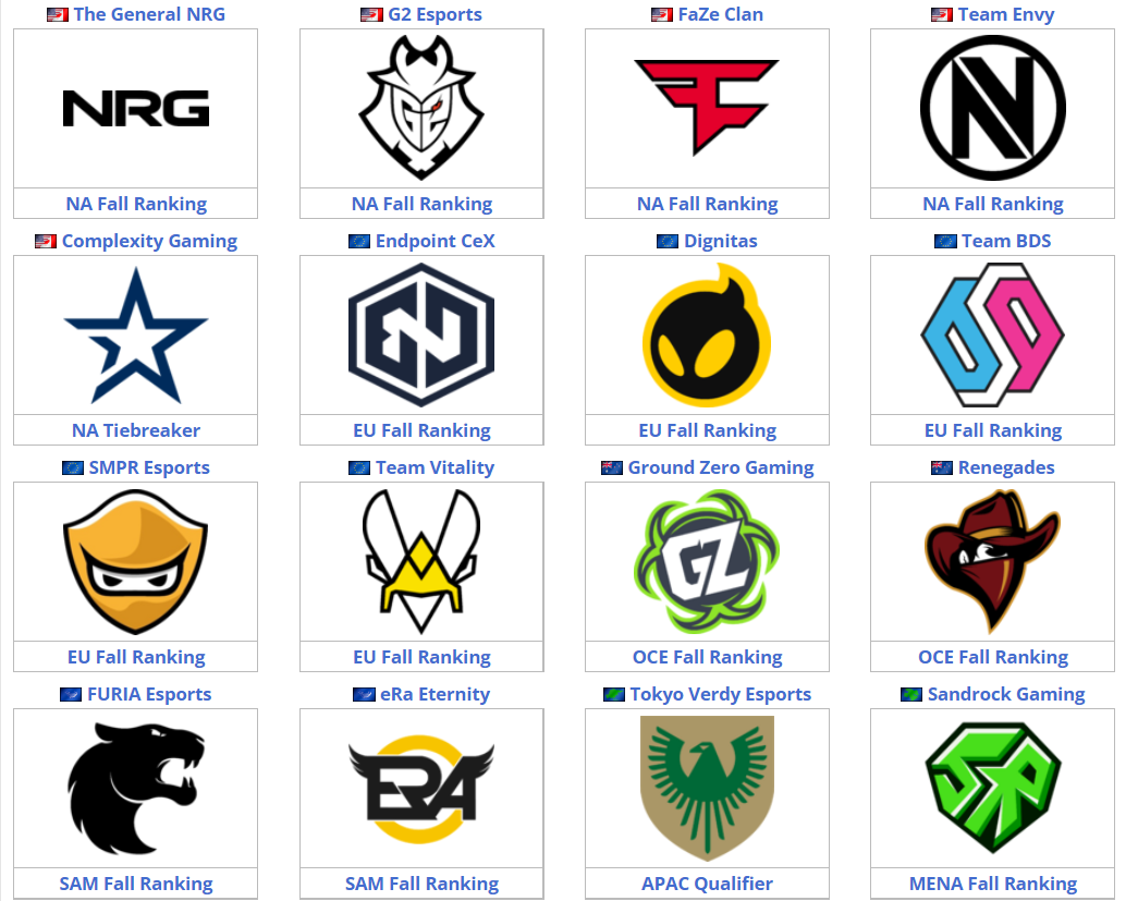 Команды-участницы RLCS Fall Major 2021: