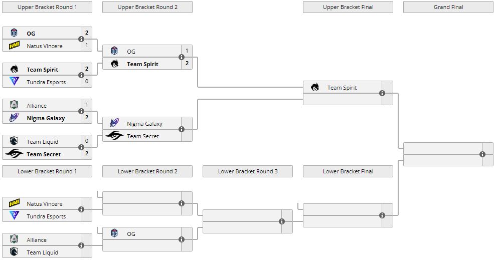 Благодаря виктории Spirit вышла в финал верхней сетки, где встретится с победителем пары Nigma Galaxy — Team Secret. OG продолжит выступление в нижней.