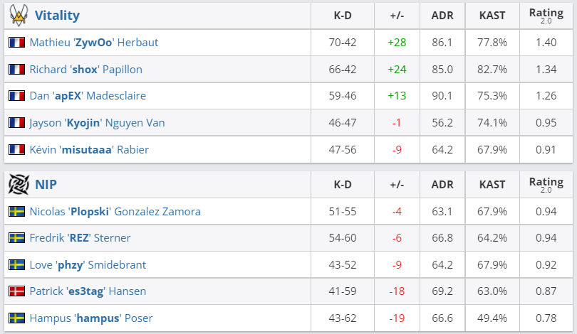 В гранд-финале Intel Extreme Masters Season XVI – Winter состав Team Vitality со счетом 3:0 (Inferno — 16:10, Dust2 — 16:10, Nuke — 16:13) обыграл команду Ninjas in Pyjamas.