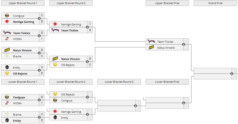 Таким образом, CIS Rejects сыграют с Coolguys на вылет с турнира. NaVi прошли в финал верхней сетки, где сразятся с Team Tickles.