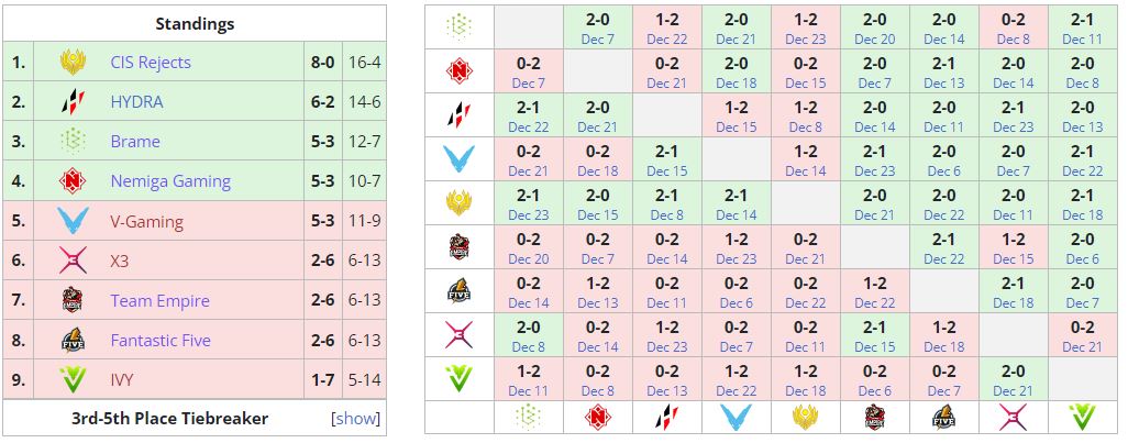 Таким образом, Nemiga покинула турнир на 5-6 месте, заработав $2000. Team Tickles 11 января сыграет с победителем пары CIS Rejects — Coolguys.