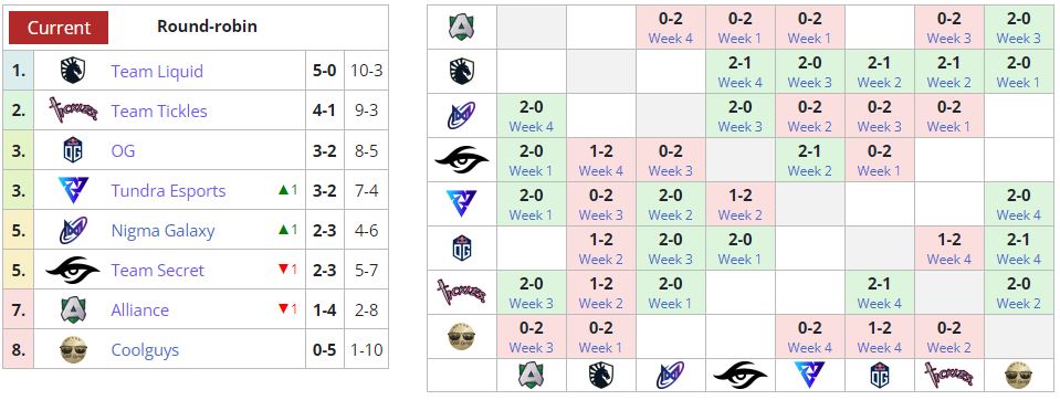 Победа позволила Team Tickles взобраться на вторую строчку в таблице. OG после поражения упала на четвертое место.