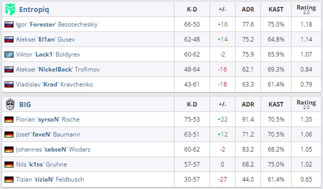 Entropiq обыграла BIG в финале нижней сетки на Funspark ULTI 2021. СНГ-коллектив добился волевой победы — 2:1 (Dust2 — 13:16, Mirage — 16:13, Nuke — 16:14).